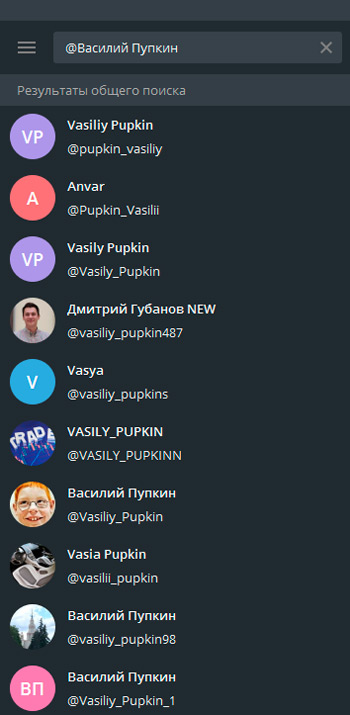 Тем не менее, бывает ситуация, когда не знаешь логин юзера. В таких случаях не расстраивайтесь. Есть много других способов найти пользователя в Телеграмме. Один из них - по имени и фамилии.