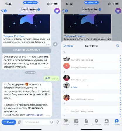 Другой вариант: вступить в чат с @premiumBot и сразу получить чек на оплату. И помните про подписку на айфоне Telegram Premium. Купить дешево ее можно именно через бота.