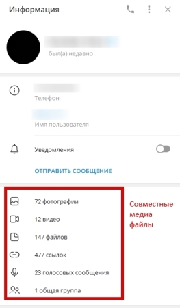 В окне «Информация о канале» есть перечень всех загруженных фото, видео и аудиофайлов, которые хранятся в совместном облаке.