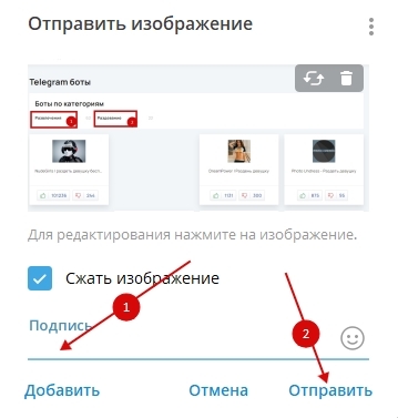 - Открыть любой диалог или канал.