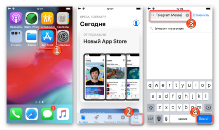 - Запустите магазин приложений и найдите telegram iphone в списке доступных приложений.