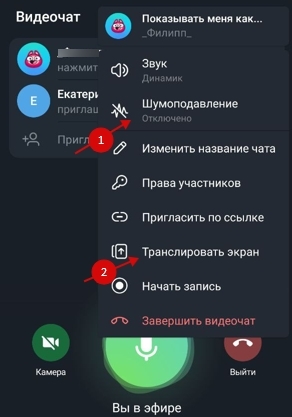 После того как включите шумоподавление, приложение будет автоматически подавлять фоновые шумы во время беседы, что сделает ее более отчетливо слышимой для всех участников.