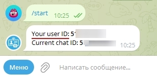 - Ответом будет прислано 2 ID – один пользовательский, другой для взаимодействия с ботом. Как правило, эти коды одинаковы.