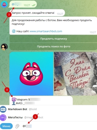 Специальные боты в приложении помогают определить не только айди у своего профиля, но и у другого человека. Воспользоваться можно тем же «@getmyid_bot»:
